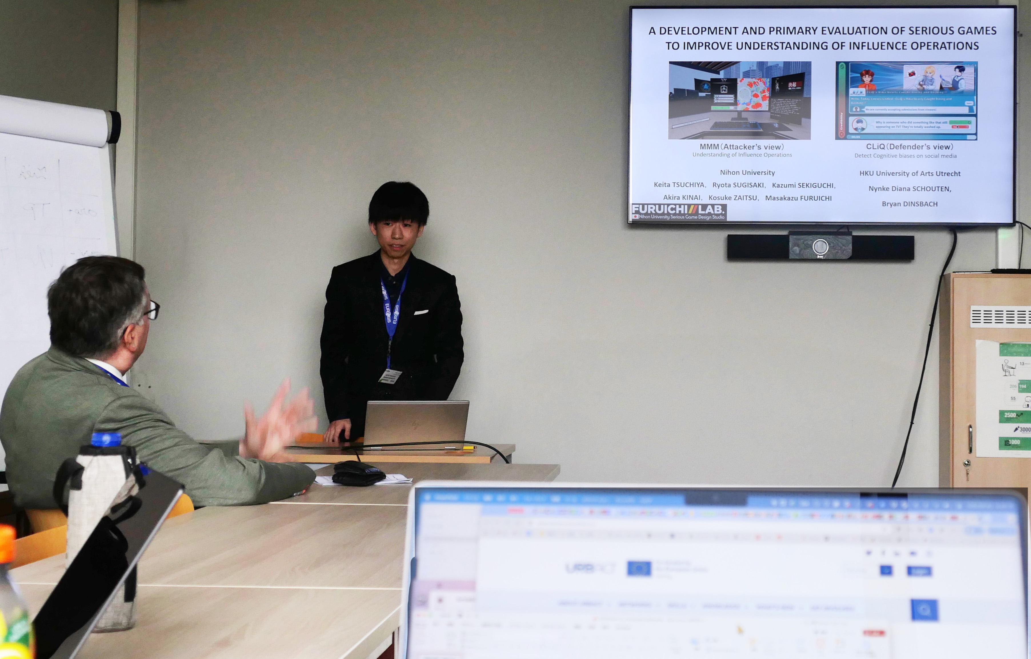 2025年10月22日〜24日にベルギーのヘント(Gent ,英語ではゲントGhent)で開催された26TH INTERNATIONAL CONFERENCE ON INTELLIGENT GAMES AND SIMULATION(Game-ON 2025)で,4年生の土屋慶太君が「A Development and Primary Evaluation of Serious Games to Improve Understanding of Influence Operations (Keita Tsuchiya, Ryota Sugisaki, Kazumi Sekiguchi, Akira Kinai, Kosuke Zaitsu, Masakazu Furuichi, Nynke Diana Schouten, Bryan Dinsbach)」というタイトルで発表しました.本研究成果は,SNS等を介して行われる影響工作(Influence Operation)に対する理解を深めることを目的として開発したシリアスゲームMMMと,影響工作に対する対処能力を認知バイアスに対する即応検知能力向上により実現することを目的として開発したシリアスゲームCLiQに関するもので,両シリアスゲームの概要を説明した後,CLiQについて有効性の評価を行った結果を発表しました.