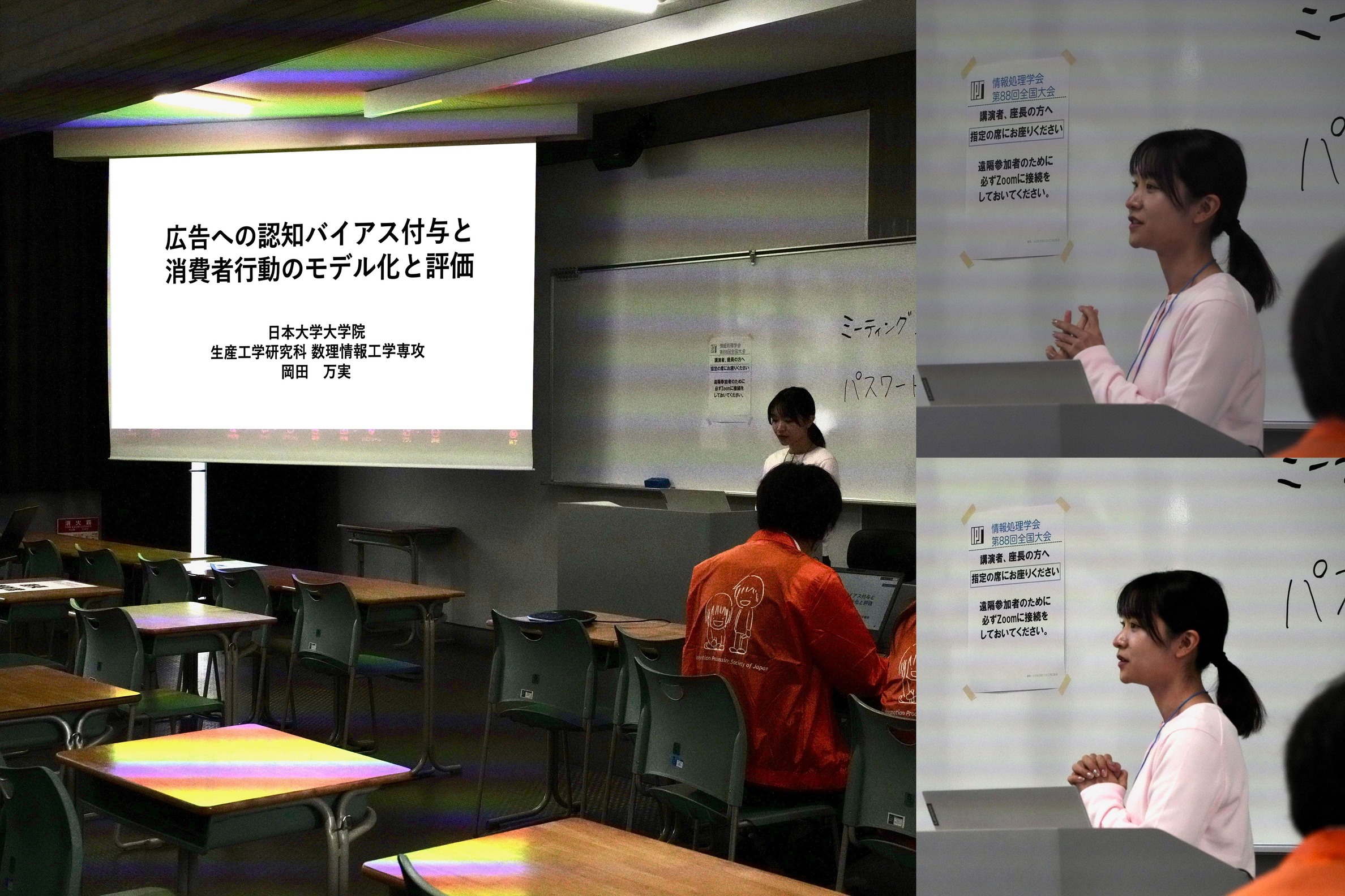 2026年3月6日〜8日に第88回情報処理学会全国大会が愛媛県松山市の松山大学で開催され,大学院博士前期課程2年の岡田万実さんが研究成果を「広告へのバイアス付与と消費者行動のモデル化と評価」というタイトルで発表,大学院博士後期課程3年の関口和巳君が2025年度山下記念研究賞受賞の授賞式(受賞タイトル「インフルエンスオペレーションにおける情報の発信・拡散及び影響のモデル化」)参加してきました.情報処理学会全国大会は約1,500件の発表が行われて約3,000人の参加者が集まる大きな大会で,古市研究室から参加するのは久しぶりでした.
