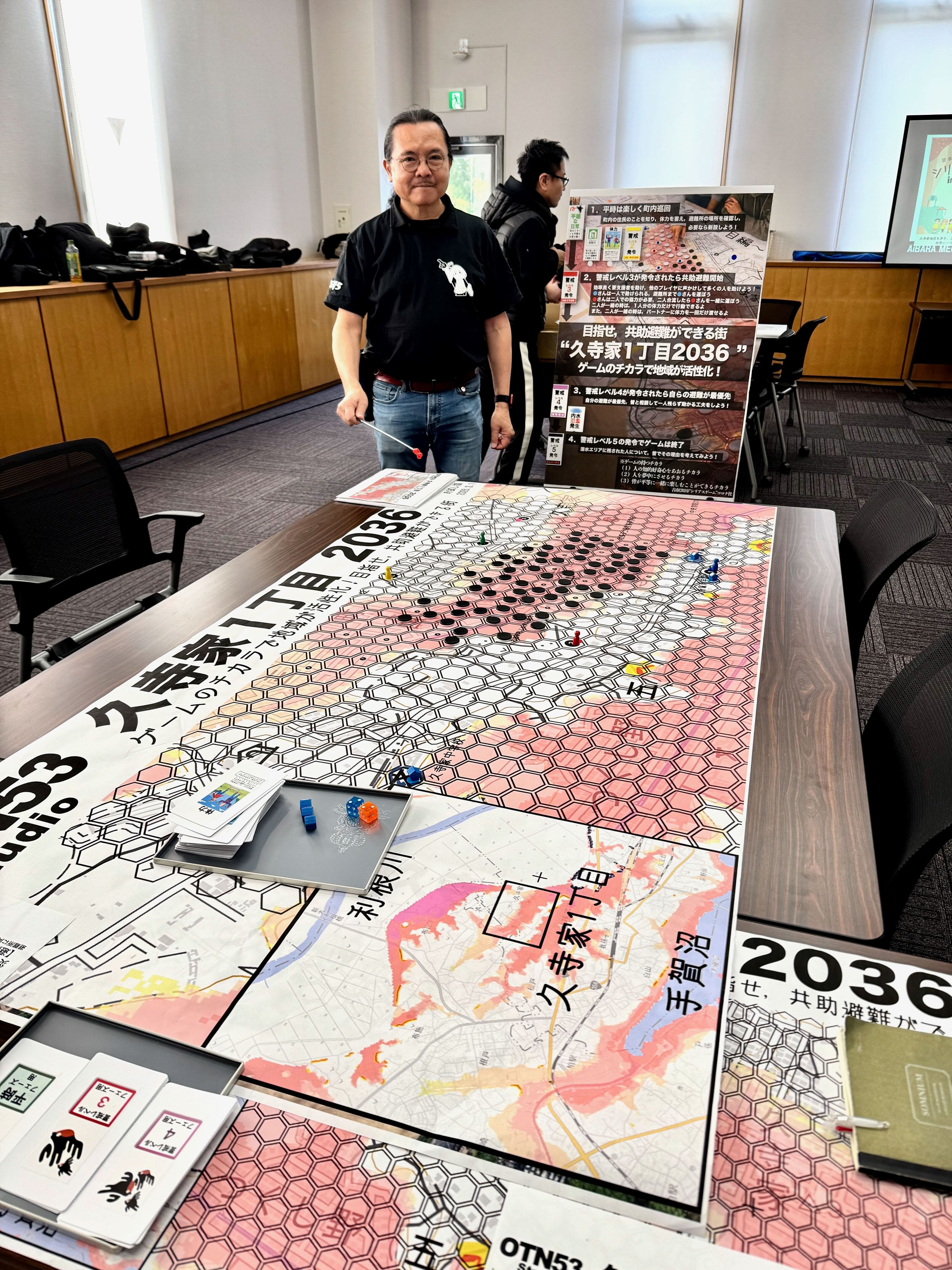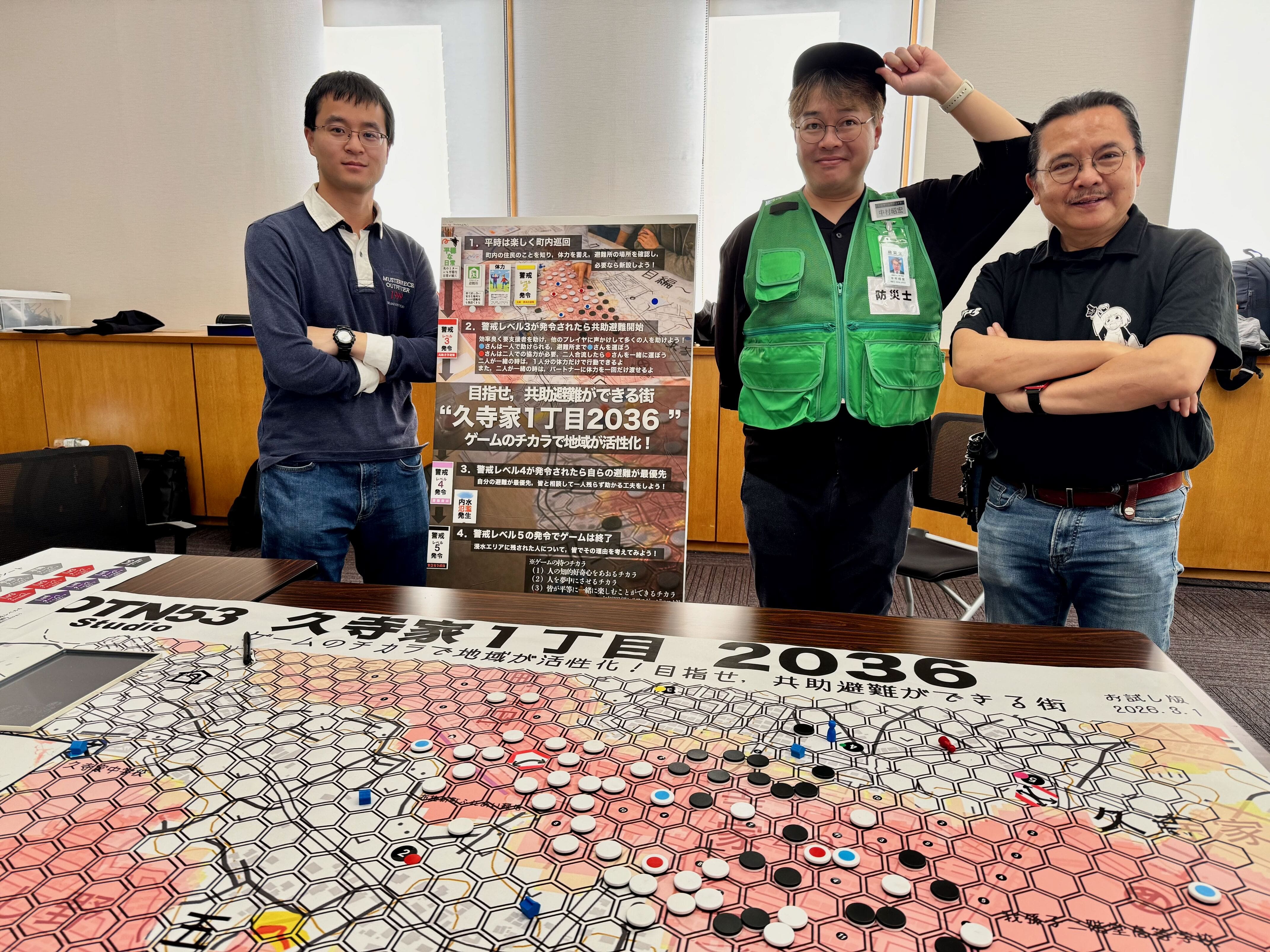 2026年2月14,15日に第11回シリアスゲームジャムが我孫子市の久寺家地区で開催され,数理情報工学科の古市先生が参加,気象予報士や防災士等の仲間と一緒にボードゲーム型のシリアスゲーム「久寺家1丁目2036」を制作,3月1日には地元住民の方向けにお披露目会を行いました.
